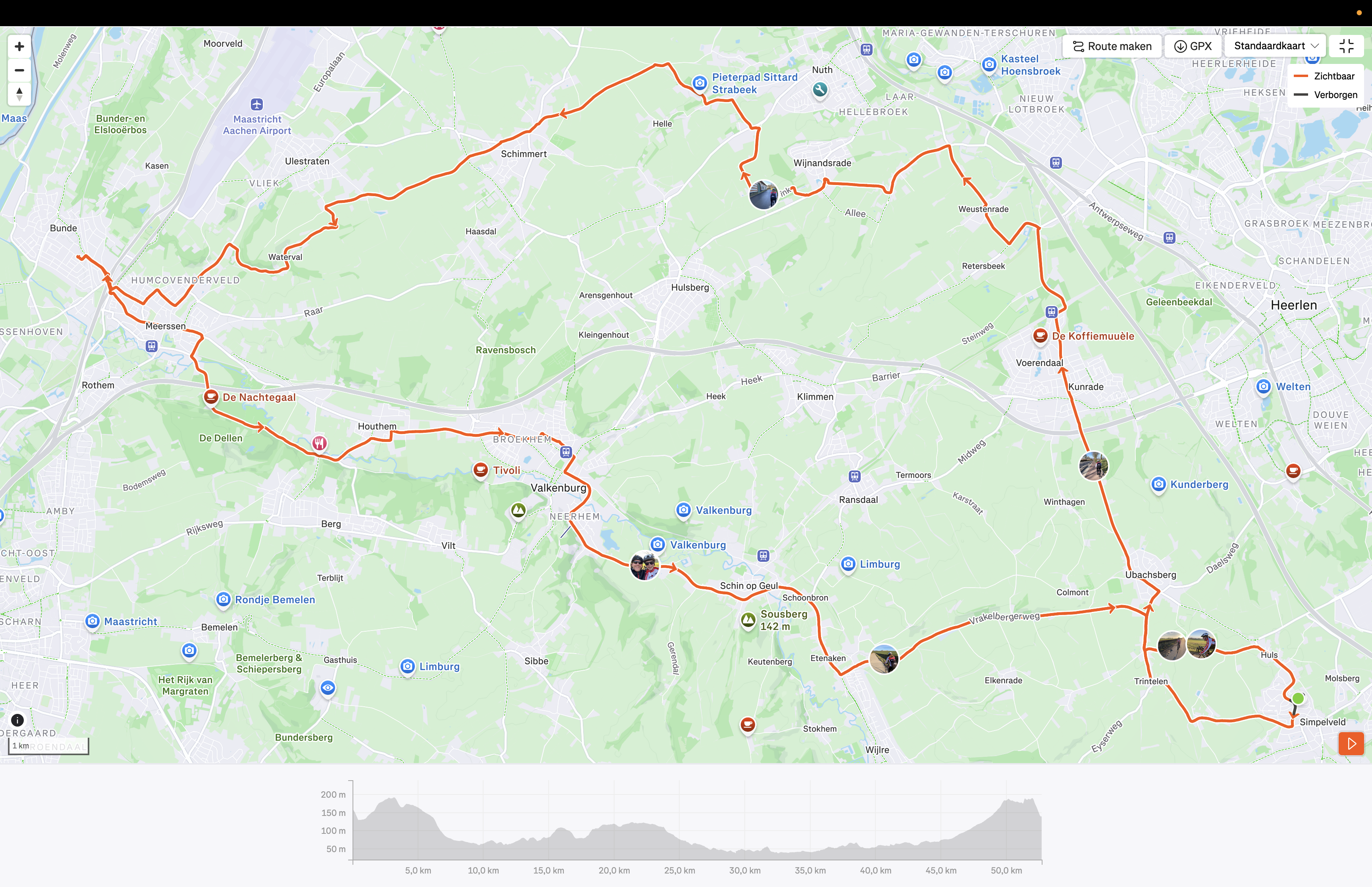 Papa had op STRAVA gezien dat iemand een mooie route naar Bunde had gereden, waar toevallig Rutger, Ineke, Tjodun en Eric wonen. Hij heeft de route gedownload, zodat we 'm ook konden fietsen. Het was heerlijk weer, en een prachtige route van 50 kilometer. Klik op de kaart om de route op STRAVA te zien.