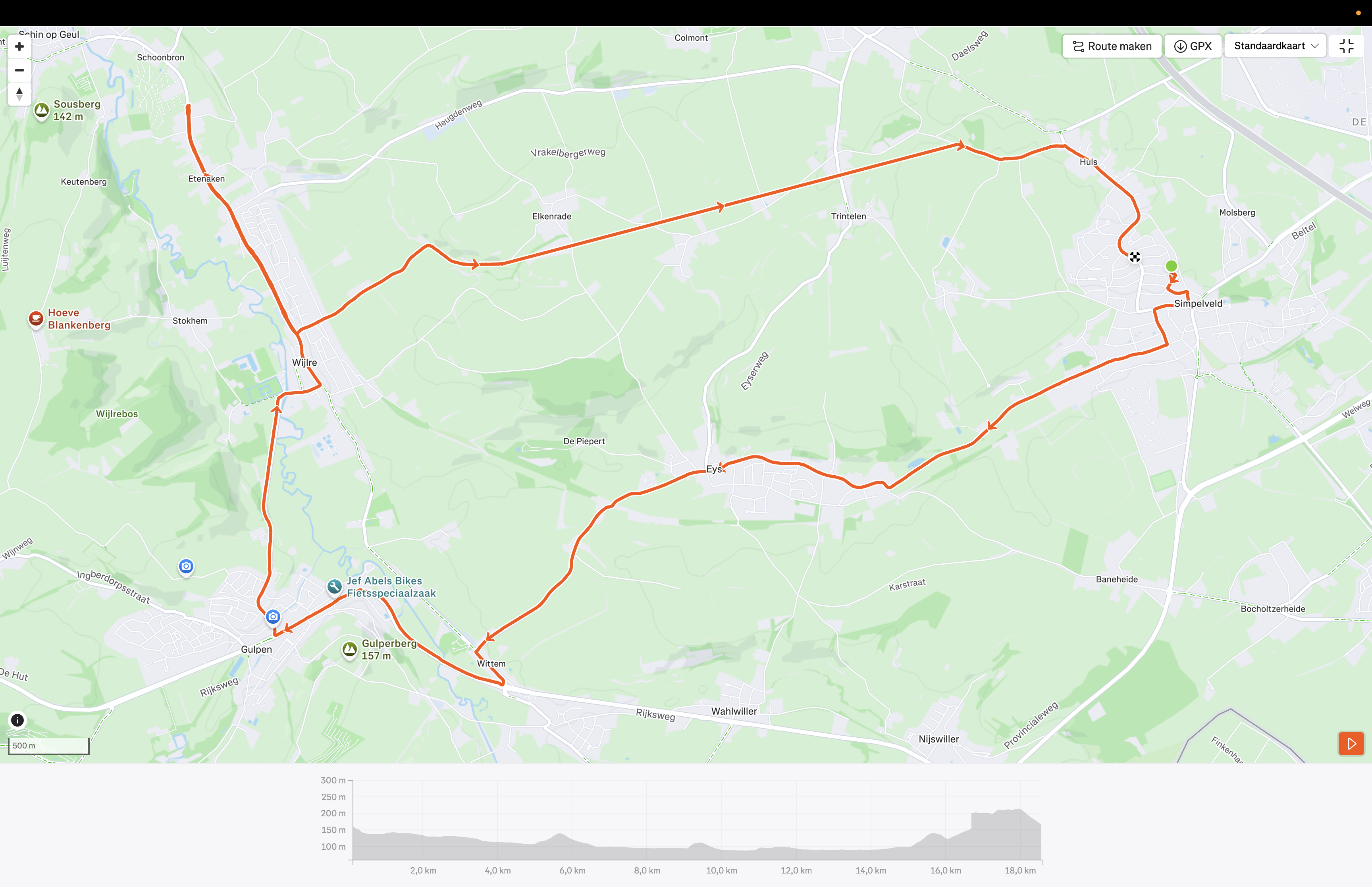 Door het leren voor de toetsweek, en omdat papa veel bij oma op bezoek was, had ik alweer een poosje niet gefietst. Vandaag ging ik naar Gulpen, en via Elkenrade terug. Een hele mooie route, zeker met een extra lusje naar de Vrakelbergseweg (naar beneden en een stukje verderop weer omhoog). Alleen... STRAVA deed het niet goed. Het extra lusje heeft-ie om een of ander reden niet opgenomen. Klik op de kaart om toch de STRAVA route te zien.